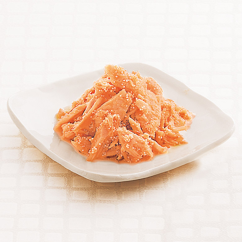 | 【原材料】 | びん長まぐろ(国産)、綿実油、たらこ(すけとうだらの卵、食塩、その他)、辛子明太子漬込液(食塩、唐辛子、すけとうだらの卵、その他)/調味料(アミノ酸等)、酸化防止剤(V.C)、ナイアシン、着色料(赤102、黄5、赤3)、発色剤(亜硝酸Na) |