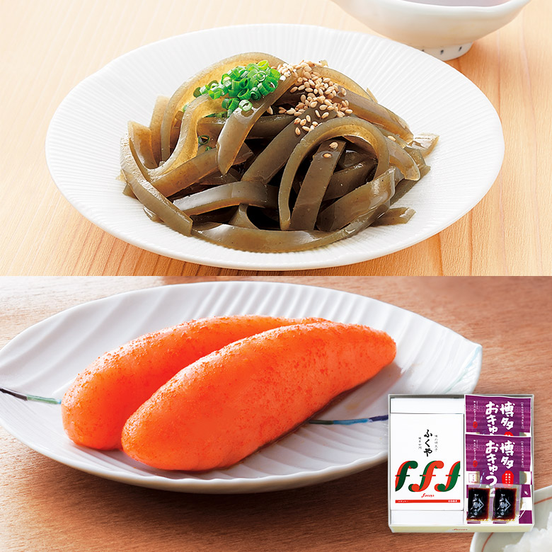 福岡で古くから親しまれる海藻食品のおきゅうとと味の明太子の詰合せセットです。