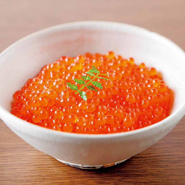 鮭の一大漁場である白糠沖を含めた北海道東沖に集まる秋鮭の中でも、いくらの最も美味しい時期である9月~10月の完熟卵のみを使用。