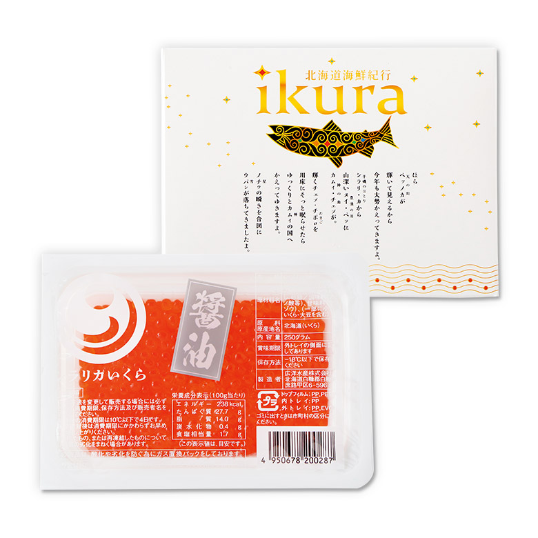 | 【原材料】 | いくら(さけ卵)、しょうゆ、みりん、食塩、かつおだし、砂糖/調味料(アミノ酸等)、甘味料(カンゾウ)、(一部に小麦・いくら・大豆を含む) |