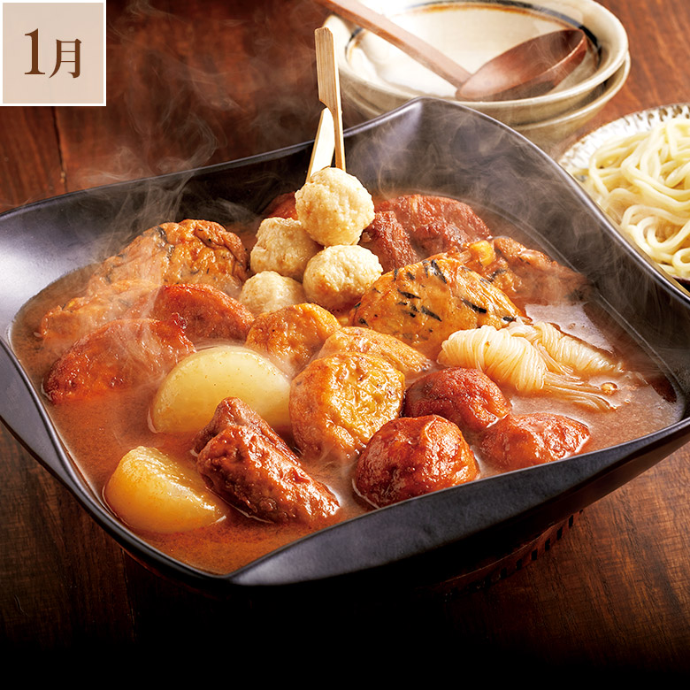 1月は明太子付き、ふくやオリジナルスープでいただく〆まで美味しい新提案おでんをお届けします。
