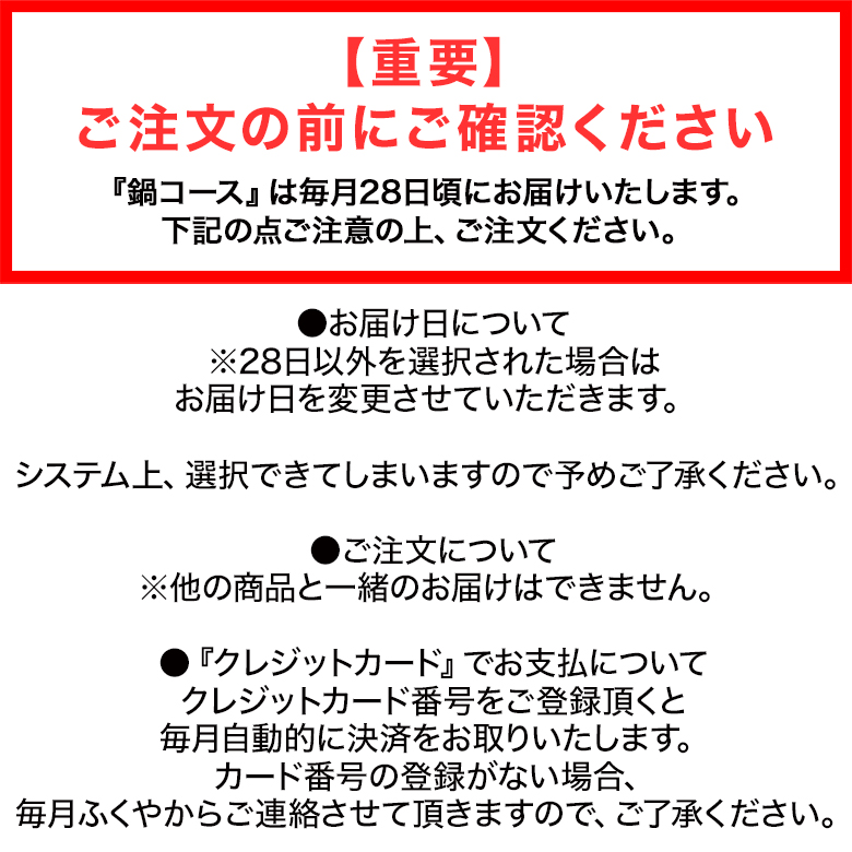 ●お届け日のご指定はできません。毎月28日のお届けとなります。