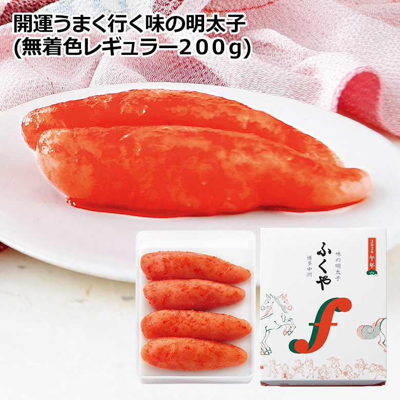 2026年の干支「午」をモチーフにしたパッケージ明太子を加え、よりお正月らしく縁起の良い福箱に仕上げています。