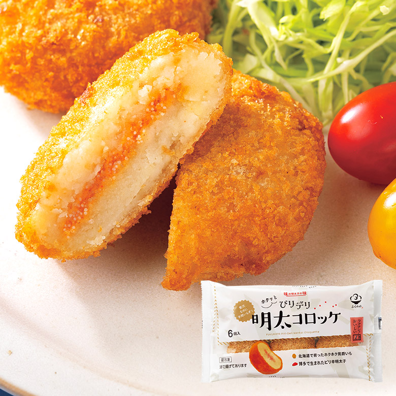 中はホクホク、ピリ辛の明太コロッケをお楽しみください。
