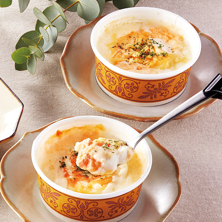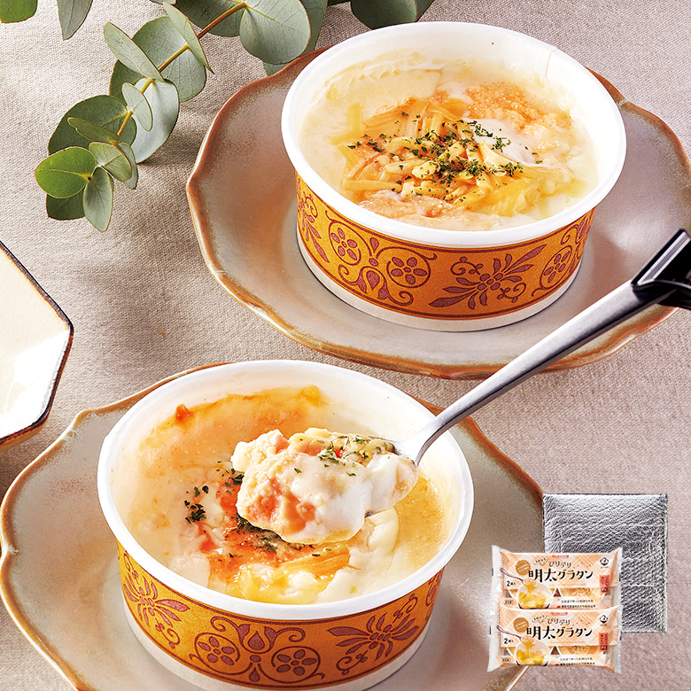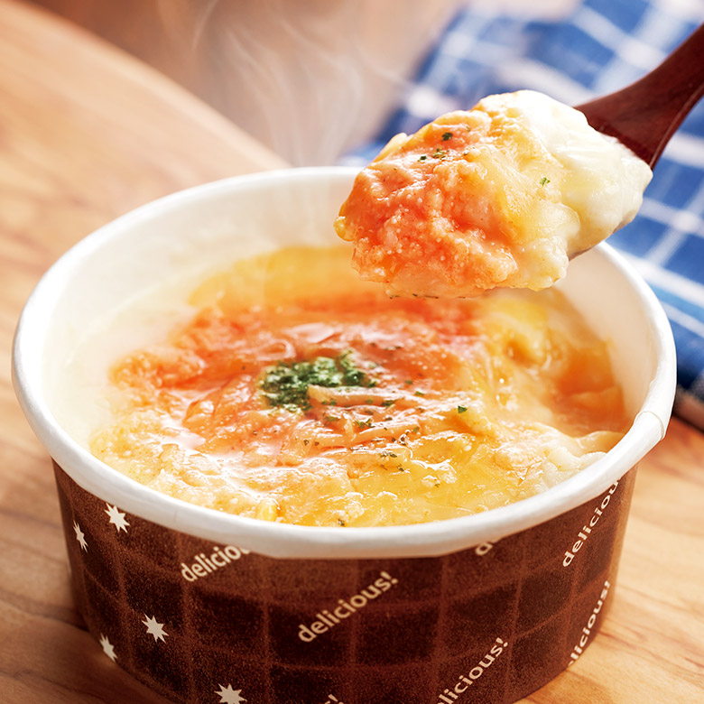 北海道・津別町で採れた新鮮で高品質な生乳を使用。明太子の粒もたっぷり入った、贅沢な明太グラタンです。