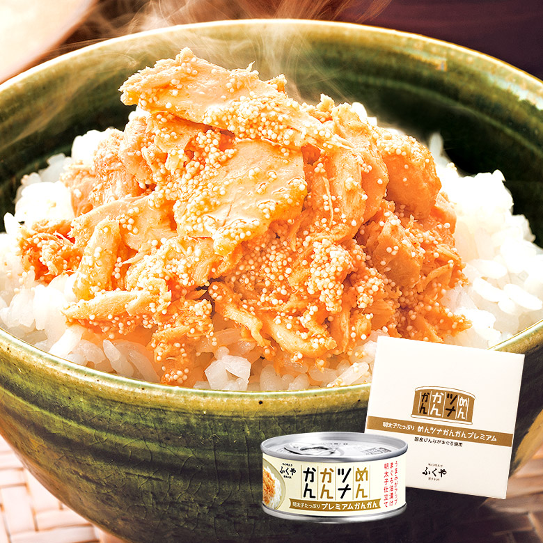 | 【内容量】 | ◆缶明太子・油漬け:85g×2 ◆明太王鯖:内容総量165g(固形量135g) ◆めんツナかんかん プレミアム箱入り:90g |