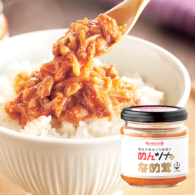 長野県産のえのきたけに明太子味のツナ(まぐろ油漬け)と味の明太粉を加えました。