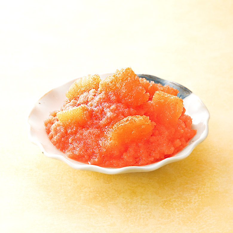 数の子・いか・くらげを一度に楽しめる、 柚子風味のあえもの明太子です。
