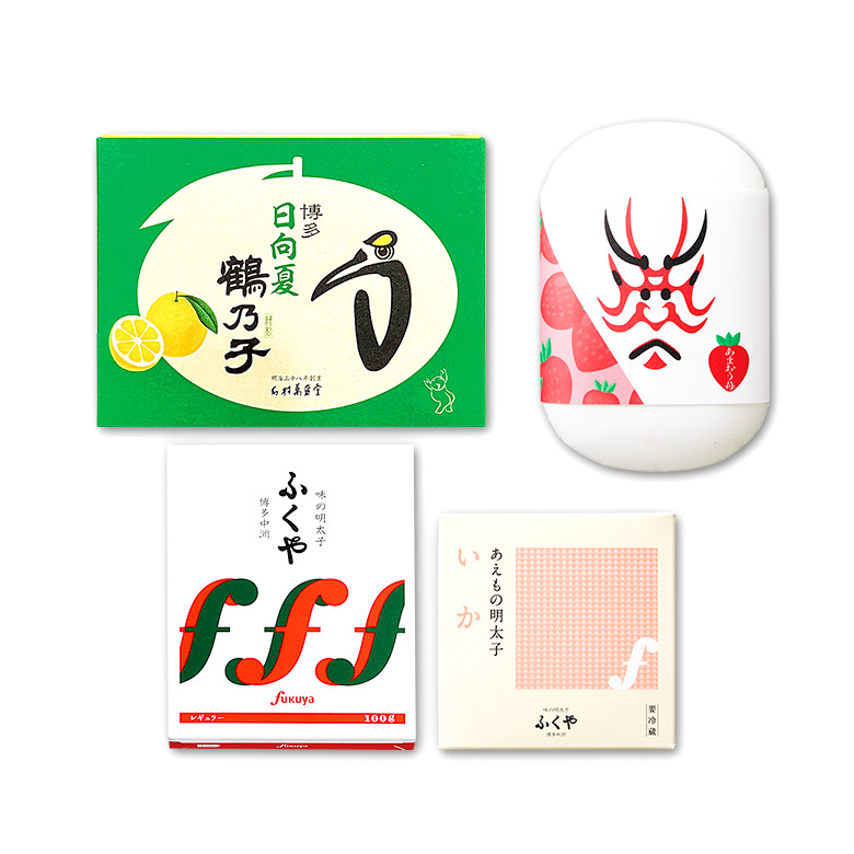 | 【原材料】 | ◆味の明太子〈レギュラー〉:すけとうだらの卵(ロシア又は米国)、食塩、香辛料、酵母エキス/調味料(アミノ酸等)、酸化防止剤(V.C)、ナイアシン、着色料(赤102、黄5、赤3)、発色剤(亜硝酸Na)、酵素 ◆いか明太子:いか加工品(国内製造(いか、食塩、その他))、すけとうだらの卵、食塩、唐辛子、酵母エキス/調味料(アミノ酸等)、酒精、甘味料(ソルビット)、ソルビット、酸化防止剤(V.C)、増粘剤(キサンタン)、着色料(赤102、黄5、赤3)、発色剤(亜硝酸Na)、酵素 ◆日向夏鶴乃子:あん(白生あん、砂糖、日向夏ソース、還元水あめ、その他)(国内製造)、砂糖、水あめ、ゼラチン、コーンスターチ/トレハロース、ソルビトール、酸味料、香料、クチナシ色素、(一部にゼラチン・りんごを含む) ◆半生キャラメル あまおう苺:水飴(国内製造)、砂糖、加糖練乳、食用植物油脂、無塩バター、クリーム、デキストリン、いちごピューレ(福岡県産いちごあまおう100%)、食塩/甘味料(ソルビトール)、酸味料、ビタミンC、乳化剤、香料、(一部に乳成分・大豆を含む) |