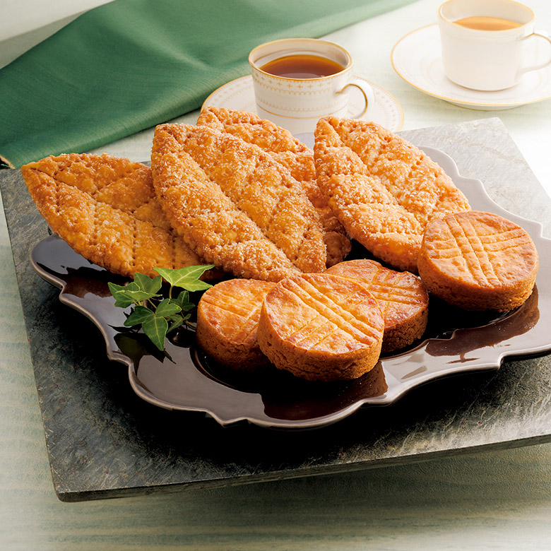 | 【主原料/原産地】 | ガレット:バター/北海道産・ニュージランド産、卵/鹿児島県産 リーフパイ:バター/ニュージーランド産 |