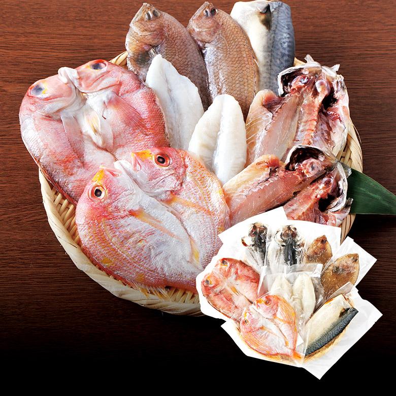 | 【内容量】 | 連子鯛1枚、真あじ2枚、甘鯛1枚、網カレイ2枚、ショウサイフグ2枚、さばみりん1枚 |