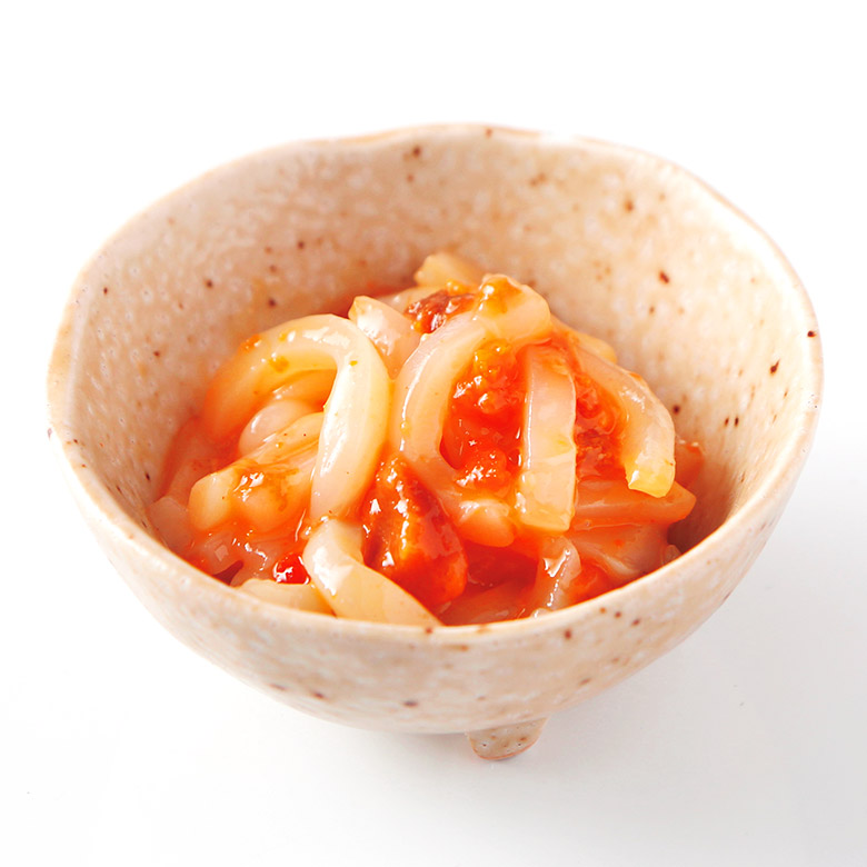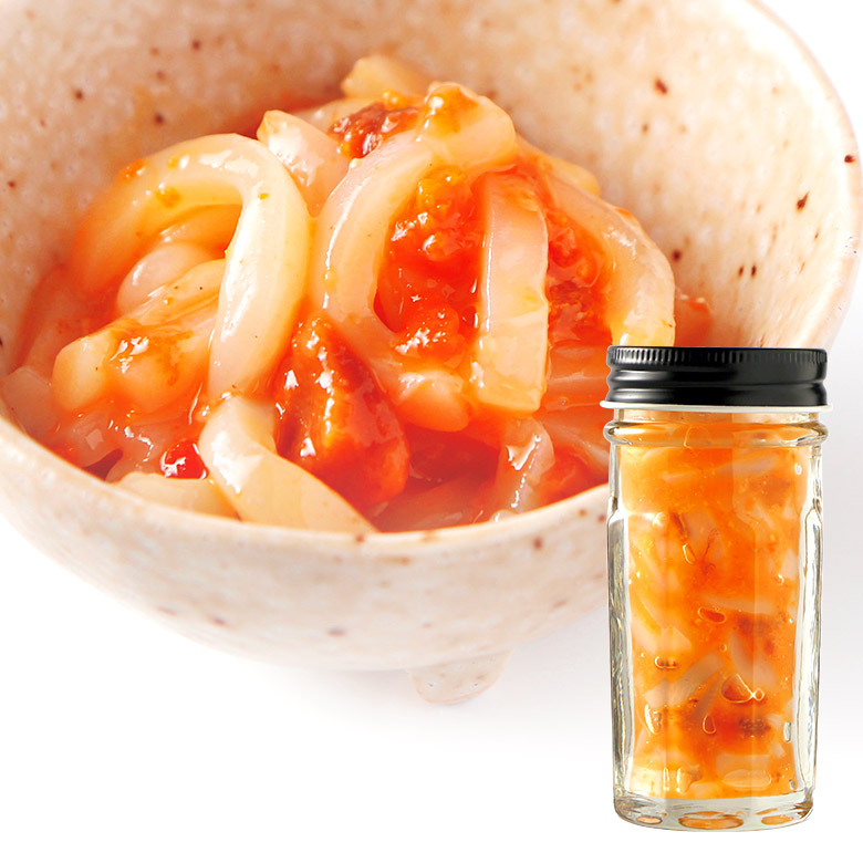 | 【原材料】 | いか(ベトナム)、粒うに(うに、食塩)、砂糖、発酵調味料、食塩、唐辛子/エチルアルコール、ソルビトール、調味料(アミノ酸等)、安定剤(増粘多糖類、カゼインNa)、甘味料(甘草、ステビア)、(一部に乳成分・いか・大豆を含む) |