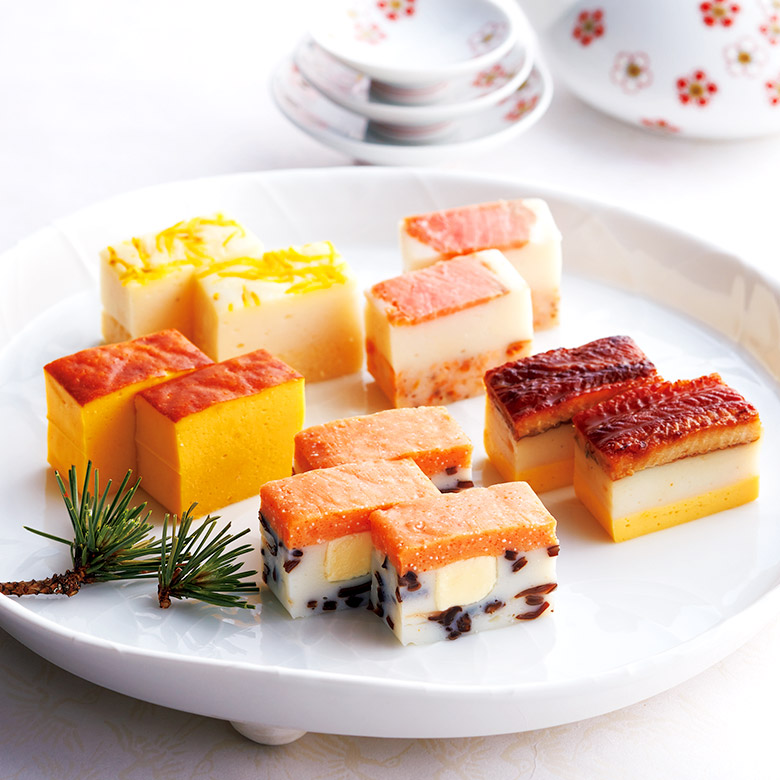 【原材料】 | 明太チーズ:魚肉(すけそうだら(米国製造)、えそ(タイ製造))、チーズ、木耳、卵白、澱粉、辛子明太子、砂糖、辛子明太子漬込液、辛子明太子パウダー、食塩、発酵調味料、たん白加水分解物/甘味料(ソルビット、トレハロース)、調味料(アミノ酸等)、ソルビット、リン酸塩(Na、Ca)、保存料(ソルビン酸)、酸化防止剤(V.C)、ナイアシン、着色料(ウコン、アナトー、赤3、赤102、黄5)、発色剤(亜硝酸Na)、(一部に乳成分・卵・大豆・ゼラチンを含む) あなご:魚肉(すけそうだら(米国製造)、えそ(タイ製造))、穴子、卵黄、卵白、澱粉、砂糖、食塩、発酵調味料、たん白加水分解物/ソルビット、調味料(アミノ酸等)、甘味料(トレハロース)、リン酸塩(Na、Ca)、保存料(ソルビン酸)、(一部に卵・大豆・ゼラチンを含む) ふくさ:卵黄(国産)、魚肉(すけそうだら(米国製造)、えそ(タイ製造))、砂糖、卵白、澱粉、味醂、小麦粉、醤油、食塩、発酵調味料、たん白加水分解物/ソルビット、調味料(アミノ酸等)、リン酸塩(Na、Ca)、保存料(ソルビン酸)、(一部に卵・小麦・大豆・ゼラチンを含む) 柚子:魚肉(すけそうだら(米国製造)、えそ(タイ製造))、シシャモ卵、卵白、澱粉、砂糖、酒、醤油、食塩、発酵調味料、柚子、たん白加水分解物/甘味料(トレハロース)、ソルビット、調味料(アミノ酸等)、リン酸塩(Na、Ca)、保存料(ソルビン酸)、(一部に卵・大豆・ゼラチンを含む) サーモン:魚肉(すけそうだら(米国製造)、えそ(タイ製造))、トラウトサーモン、卵白、澱粉、砂糖、食塩、発酵調味料、ブラックペッパー、醤油、たん白加水分解物/甘味料(トレハロース)、ソルビット、調味料(アミノ酸等)、リン酸塩(Na、Ca)、保存料(ソルビン酸)、(一部に卵・さけ・大豆・ゼラチンを含む) |