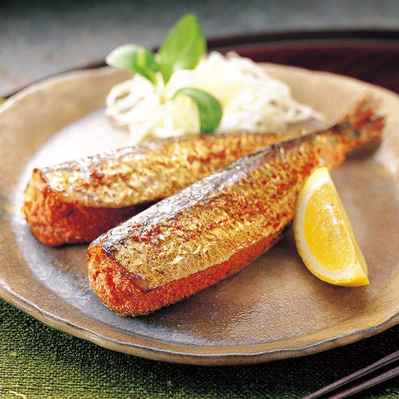 脂の乗った国産いわしの腹にたっぷりと明太子を詰めて焼いた人気商品です。