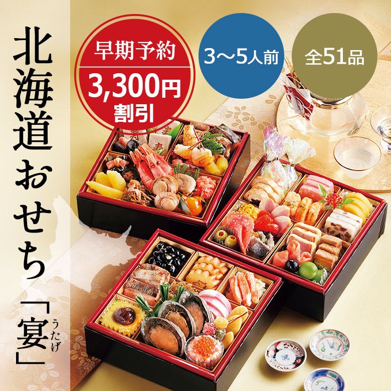 ■北海道おせち三段重「宴(うたげ)」※早得