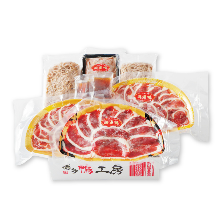 【取扱上の注意点】 | ※鴨ローススライス、鴨モモスライスと鴨つみれは、袋のまま冷蔵庫または流水で解凍しておきます。 ※電子レンジの調理はできません。 ※いったん解けたものを再び凍らせると品質が変わることがあります。 |