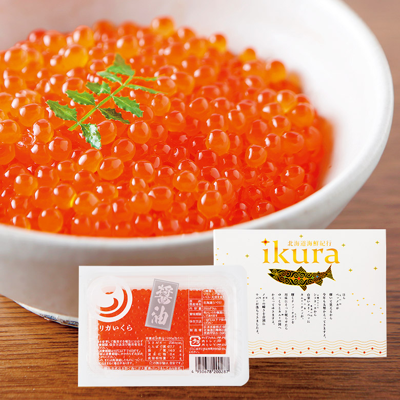 【原材料】 | いくら(さけ卵)、しょうゆ、みりん、食塩、かつおだし、砂糖/調味料(アミノ酸等)、甘味料(カンゾウ)、(一部に小麦・いくら・大豆を含む) |