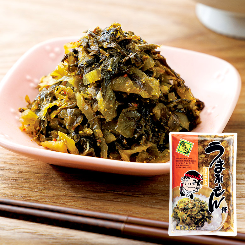 お漬物として、お料理の具材として最高の高菜をふくやらしく明太子で仕上げました。