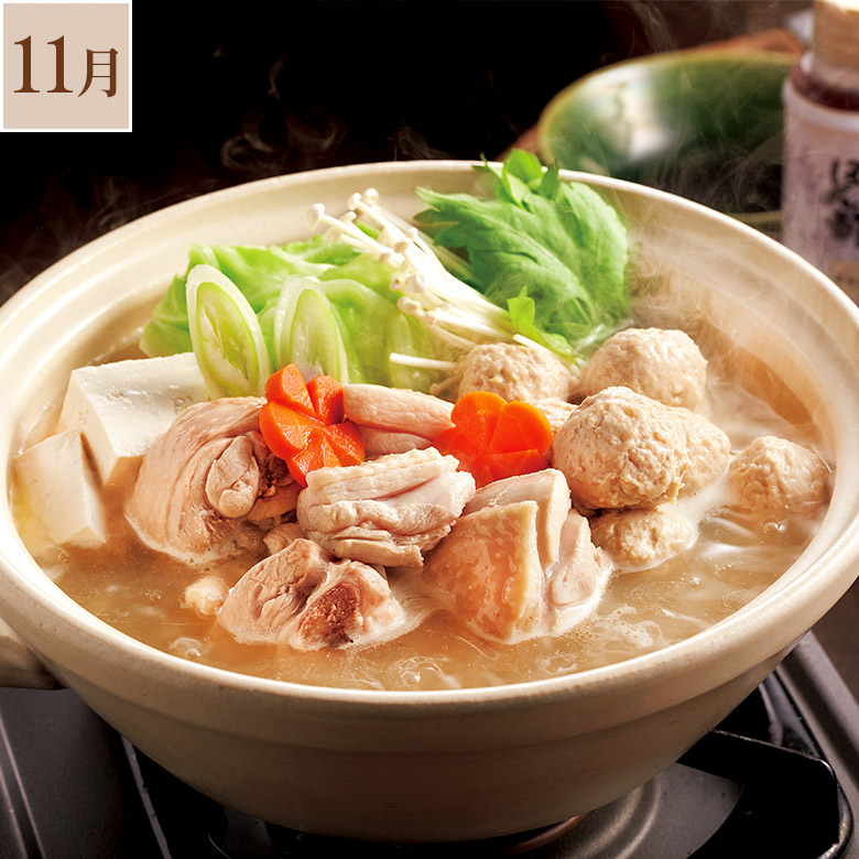 11月は平飼い鶏の旨みが凝縮した濃厚な白濁スープと、ほどよく歯ごたえのある鶏肉を堪能できる「博多華味鳥水炊きセット」をお届けします。