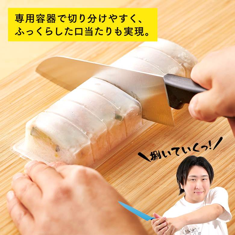 きゅうりのポン酢和えが心地よい食感のアクセントとなり、ふわりと広がるゆずの香りが、これまでにない新感覚の押し寿司です。