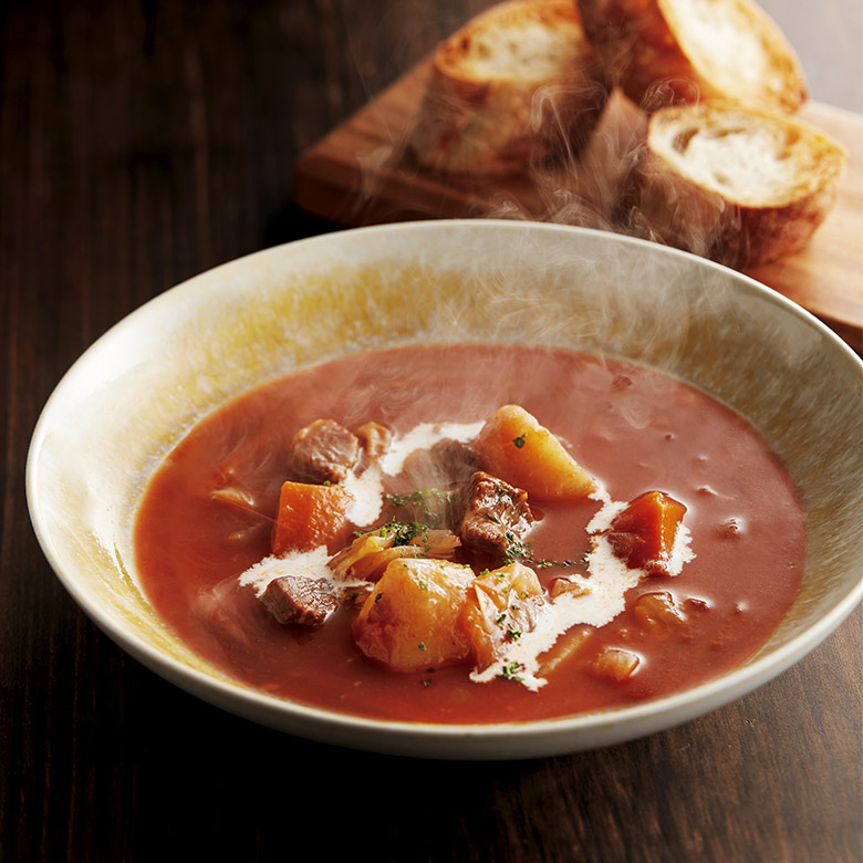 古くからロシアで愛好され、お肉や野菜などをじっくり煮込んだスープ料理です。