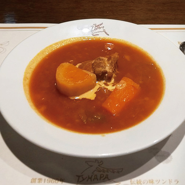 ツンドラの看板メニュー「ボルシチ」は牛骨や野菜などを煮込んだスープ煮トマトピューレを合わせ、 根菜類、ビーツと肉を加えたもので、素材の味を生かした優しい味わいです。