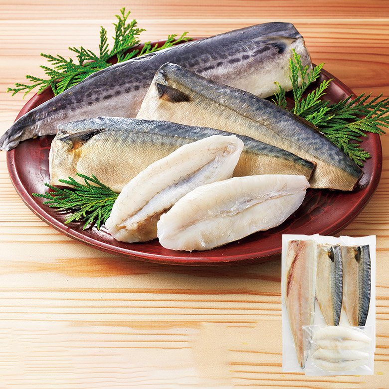 さわら、ショウサイフグ、サバみりんの一夜干しです。ショウサイフグのプリプリとして弾力のある食感や、真鯖本来の旨みを残しつつ、やさしい甘みが引き立つサバみりんを、ぜひご堪能ください。