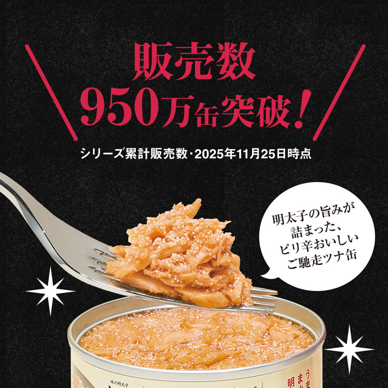 1缶の約20%が明太子の粒という贅沢なツナ缶。