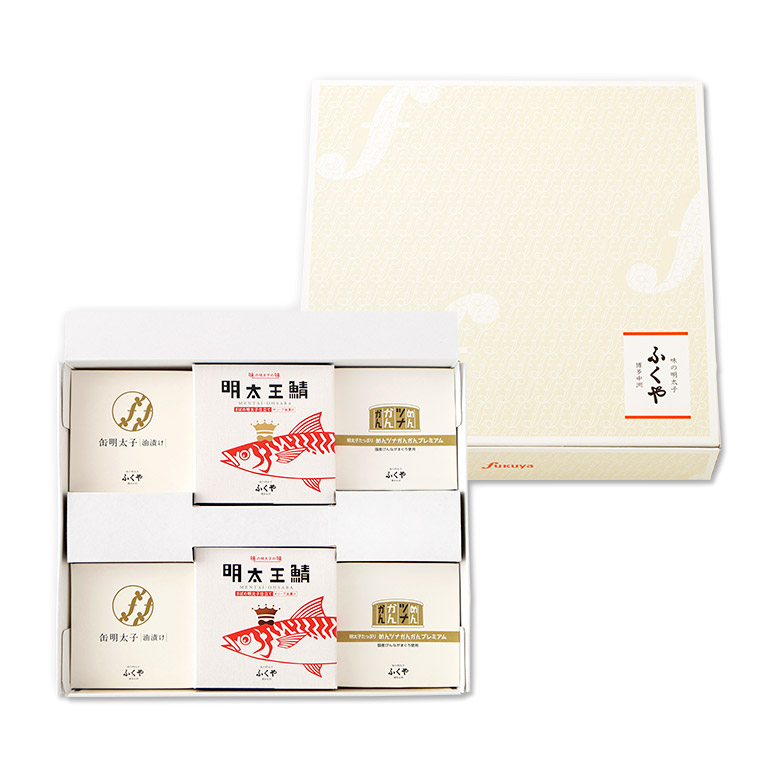 | 【内容量】 | ◆缶明太子・油漬け:85g×2 ◆明太王鯖:内容総量165g(固形量135g)×2 ◆めんツナかんかん プレミアム箱入り:90g×2 |