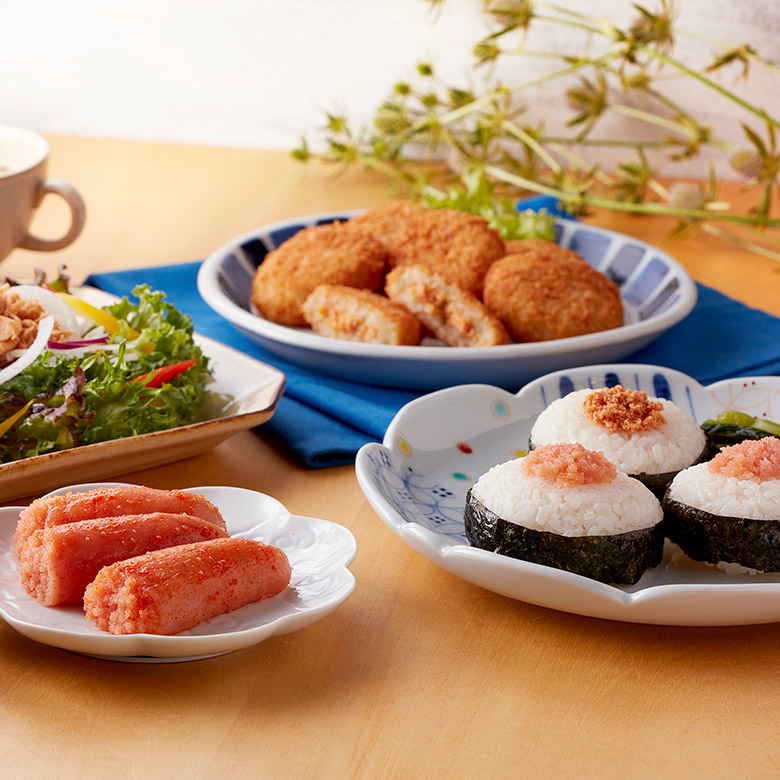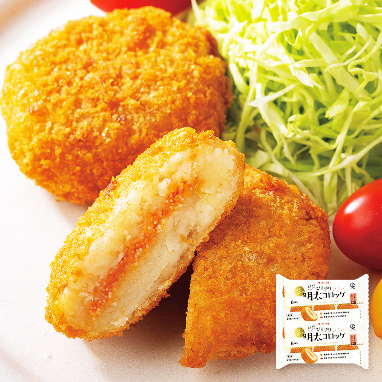 油要らずの簡単調理で、ホクッとピリッと美味しいコロッケと人気の家庭用明太子のセットです。