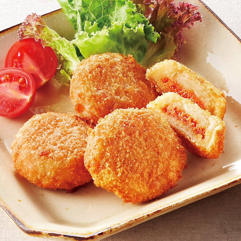 中はホクホク、ピリ辛の明太コロッケをお楽しみください。