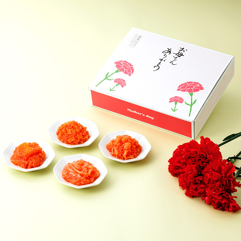 | 【内容量】 | ◆数の子明太子:110g ◆くらげ明太子:110g ◆いか明太子:110g ◆ほたて貝柱明太子:110g |
