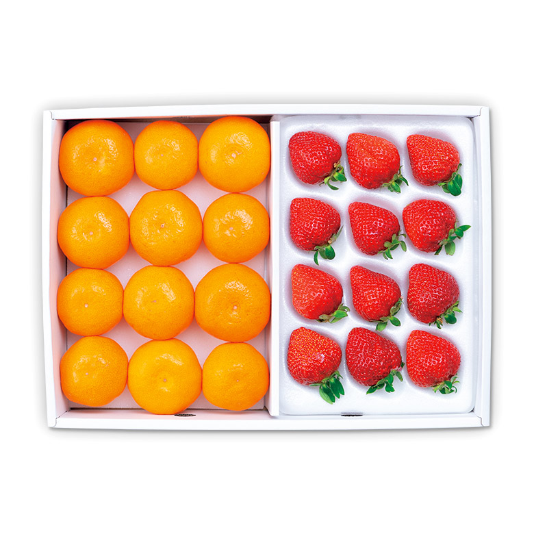 【内容量】 | 福岡あまおう12-15粒 約25g、山川みかん9-12玉 S・M・Lサイズ |