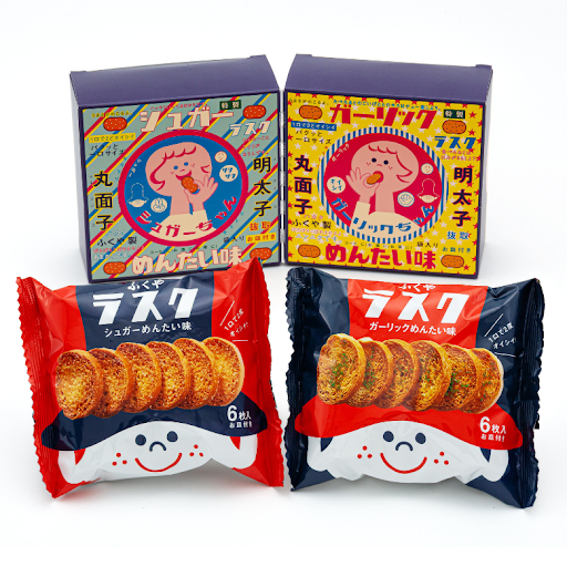 福岡観光で有名な太宰府天満宮の参道にある「太宰府グルメ=明太茶漬け」を食べることができるふくや太宰府店です。 【ふくやラスク めんたい味セット/550円】 「2022日本パッケージングコンテスト」で「菓子包装部門賞」を受賞しました! シュガーとガーリックの2種類の明太味が楽しめる、おつまみにもおやつにもピッタリなラスクです。どちらもピリッとした辛さの中に、シュガーの甘味・ガーリックのアクセントが効いており、1口サイズで食べやすいラスクです。 (ふくや太宰府店) ■営業時間 9:30~17:30 ■店内飲食10:00~16:30 「福岡土産」もたくさんご用意しております。太宰府天満宮へお越しの際は、是非「ふくや太宰府店」へお立ち寄りくださいませ。