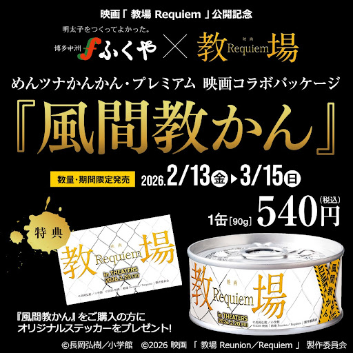 九州自動車道「太宰府」インター近くにあります。 【味の明太子ふくや大野城店】です。 \映画「教場」×ふくやコラボ決定!/ 2月20日公開の映画「教場」を記念して、 特別仕様の「風間教かん」が登場! 購入特典として、オリジナルステッカーをプレゼント🎁 数量・期間限定につき、お早めに👆