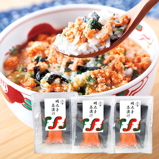 福岡土産なら明太子!! ⭐天神店おすすめ商品⭐ 『ふくや 明太子茶漬け3食セット』 1998円(税込) プチプチ食感、ふくやの明太子入り! ふくやの明太子がたっぷり入った、ちょっと贅沢なお茶漬けができました。 半生のような食感の明太子が常温で日持ちします。 冷凍、冷蔵の明太子だけでなく、常温の新しいお持ち帰りお土産としておすすめです。 ご飯に明太子をのせて、添付の具材・だしをかけて、お湯を注ぎ、明太子茶漬けとして召しあがりいただけます。 上品な明太子の辛みとだしつゆの旨味があいまって、とても贅沢感のあるお茶漬けの素です。